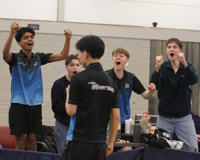 De gezichten van Madhav, Illion en Joas stonden strak gespannen voor aanvang van het alles beslissende tweede duel met het jeugdteam van Scyedam. Een week eerder was de eerste ontmoeting in Schiedam na dik 5 uur bloedstollend tafeltennis in 5-5 geëindigd. En zelfs in games hielden beide teams elkaar in evenwicht. En dus was het erop of eronder voor Hilversum in deze titanenstrijd.