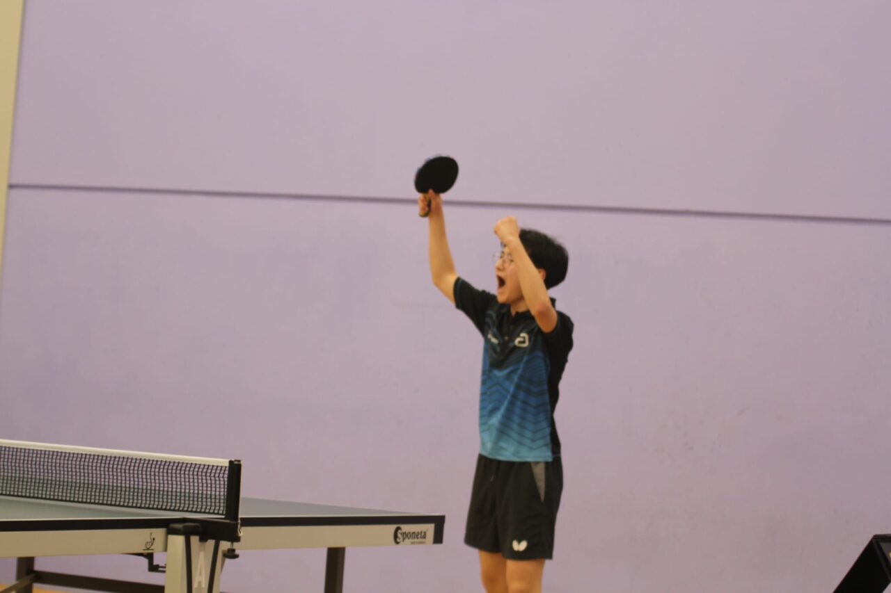 Zou het dan toch nog misgaan? Het was billen knijpen voor de toeschouwers en ook bij de spelers was de spanning om te snijden. Van Joas werd verwacht dat hij zijn tweede winstpartij zou pakken tegen Jasper van Doorn en dat deed hij met overtuiging (3-0). Daarmee ging de poort naar de finale verder open. Maar er stonden nog twee ‘hangpartijen’ op het wedstrijdformulier, die een week eerder in Schiedam beide werden verloren. Hilversum moest er tenminste een zien te winnen. En dat gebeurde. Illion Zwart mocht zich laten kronen tot matchwinnaar. In Schiedam had hij zich de week ervoor nog in de luren laten leggen door zijn passieve tegenstander Koen van den Berg. Dit keer liet Illion zich niet de kaas van het brood eten. Door dicht bij tafel te blijven en goede spinvariaties toe te passen hield hij grip op het spel van z’n opponent en bij een 2-1 en 10-9 voorsprong sleepte hij het verlossende punt binnen.